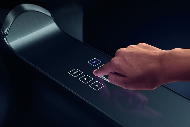 Touch applications can be used for a wide range of electrical devices. The advantages are clear: Convenient and intuitive operation, forward-looking designs with a harmonious overall appearance, quick cleaning, and the elimination of tedious spare parts ordering, as there are no mechanical buttons, switches, and rotary wheels that could be damaged with touch applications. At PolyIC, we distinguish between three application groups: Touchscreens for operating displays, highly functional touchpads and control elements in the form of capacitive sensor buttons, and elegant touch sliders with fascinating backlighting effects. Immerse yourself in the world of PolyIC touch sensors and be inspired by our breathtaking design concepts.